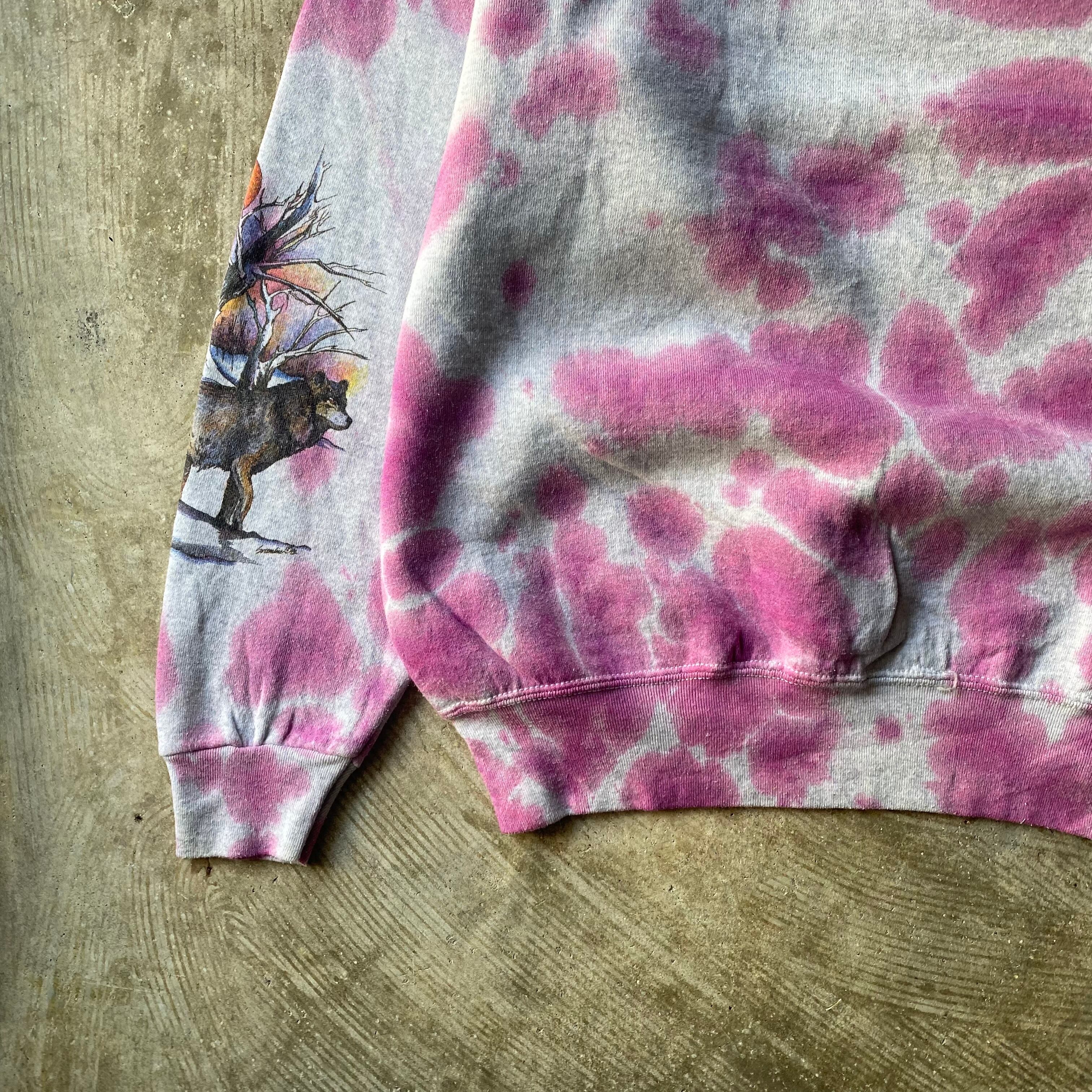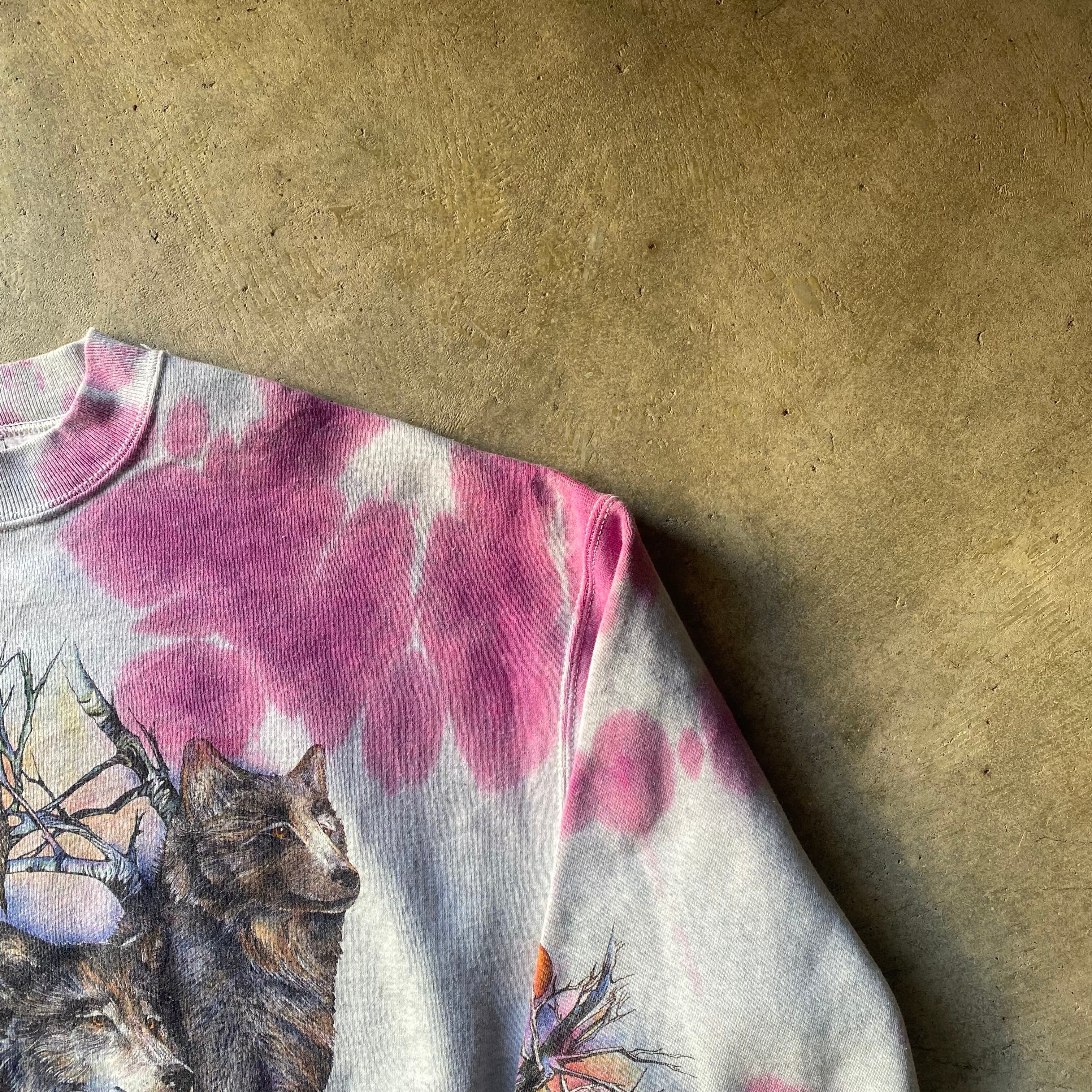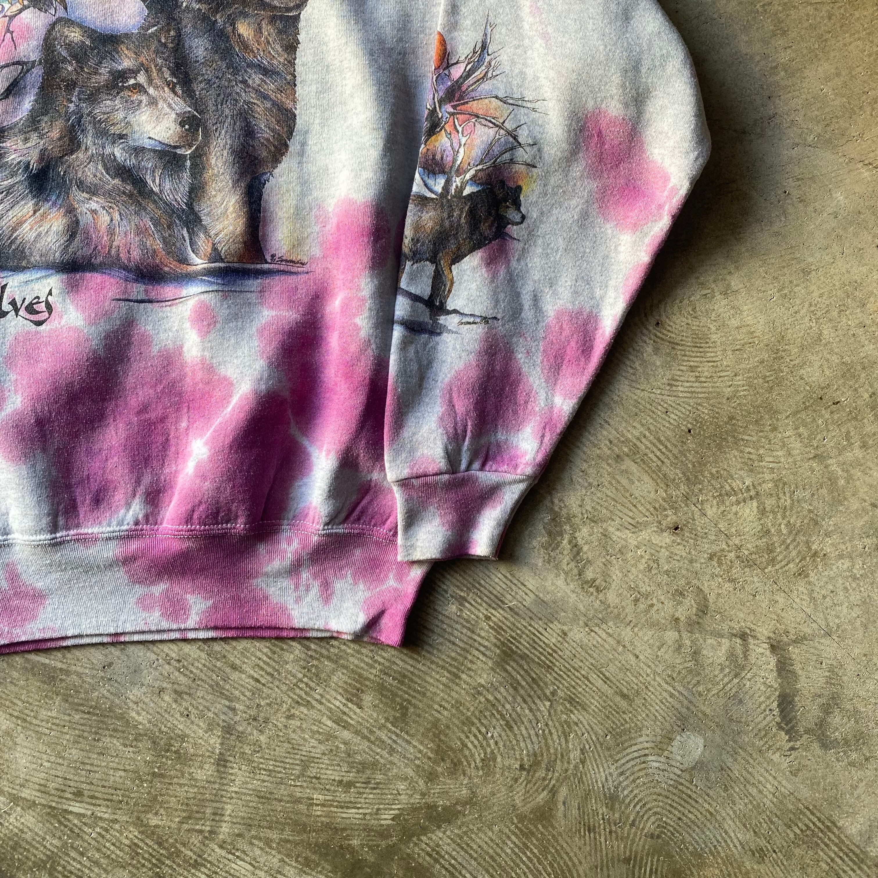 FRUIT OF THE LOOM "TYE-DYE" Wolf Print Sweat Shirt