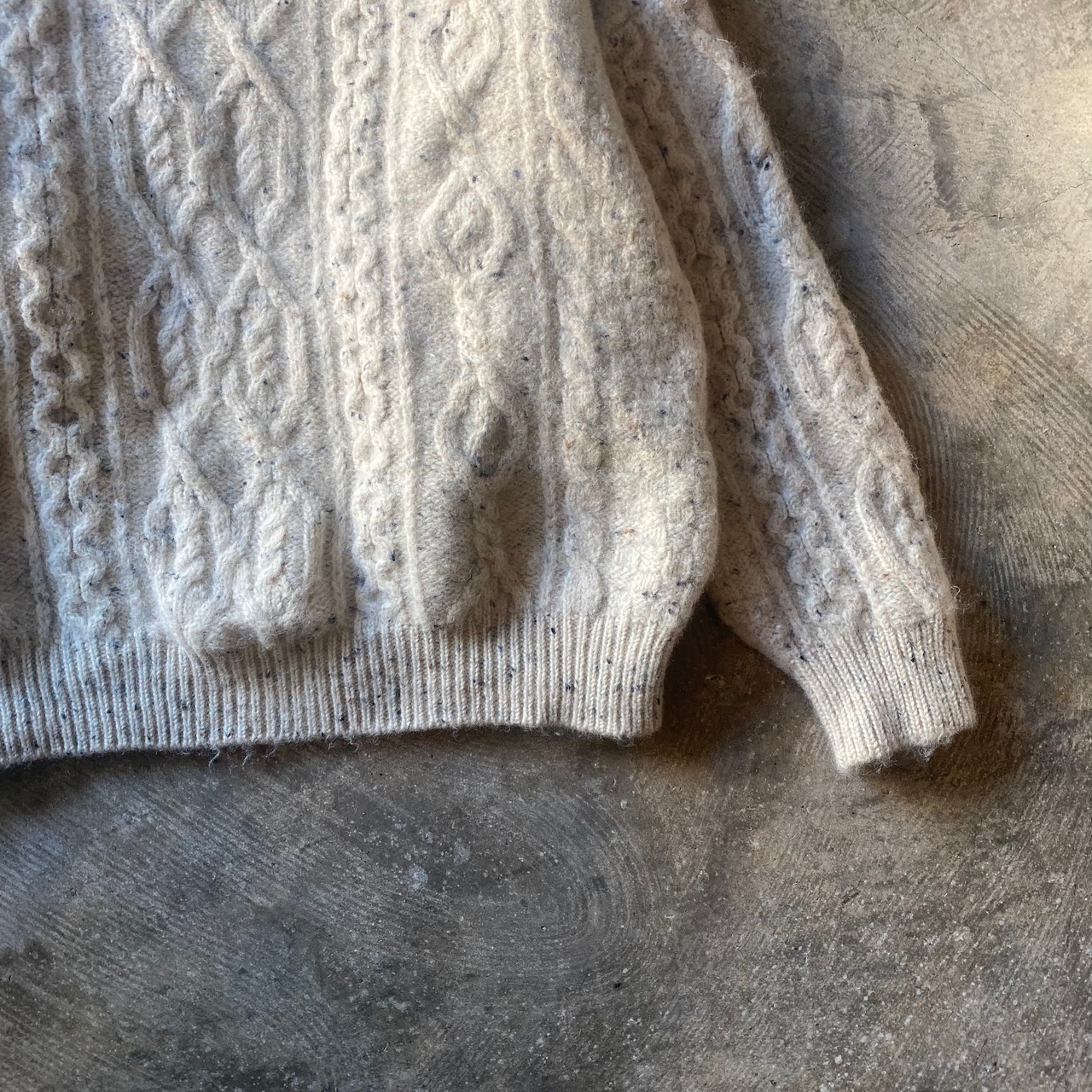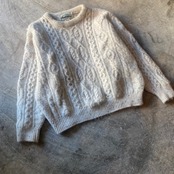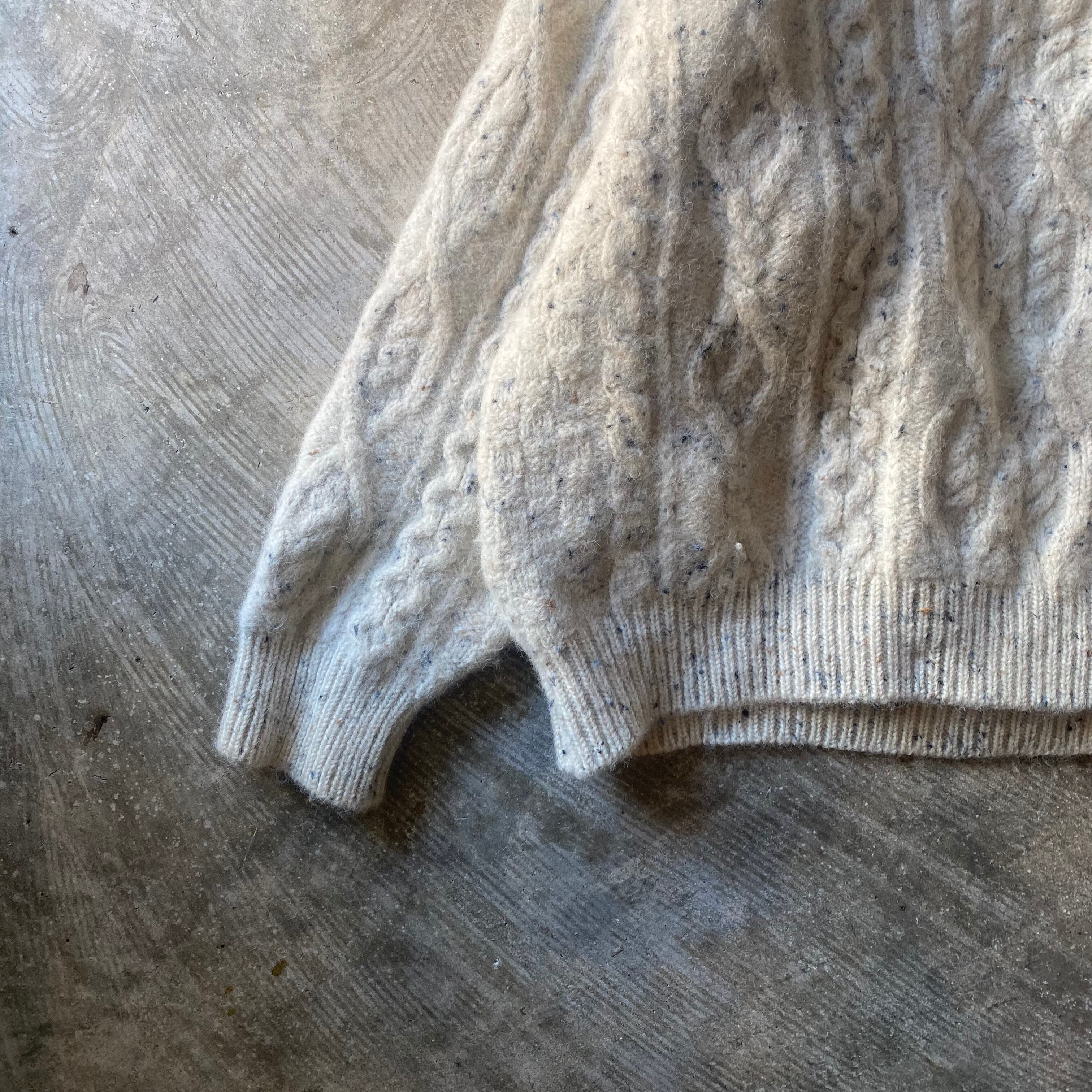太い毛糸を密に編んだしっかりとしたフィッシャーマンニットセーター。サイズXLなのでゆるーく着るのがかわいいです。