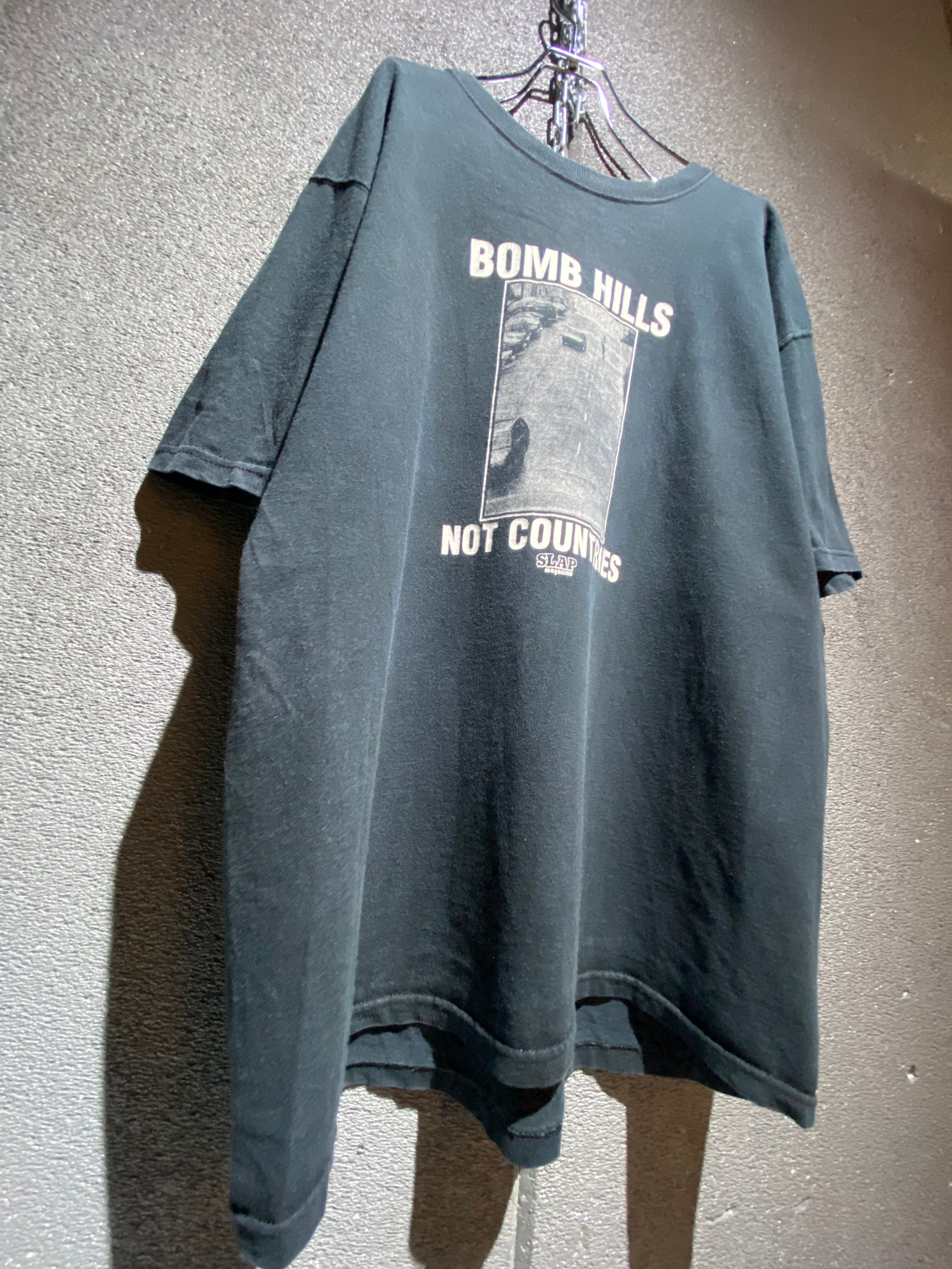 このTシャツが販売されていた頃のアメリカはイラク戦争で爆弾を落としまくって頃で、それに対して"爆弾(BOMB)落とさずにダウンヒル(BOMBHILL)でもしよう"的な反戦のメッセージと皮肉を込めたデザインになっています。