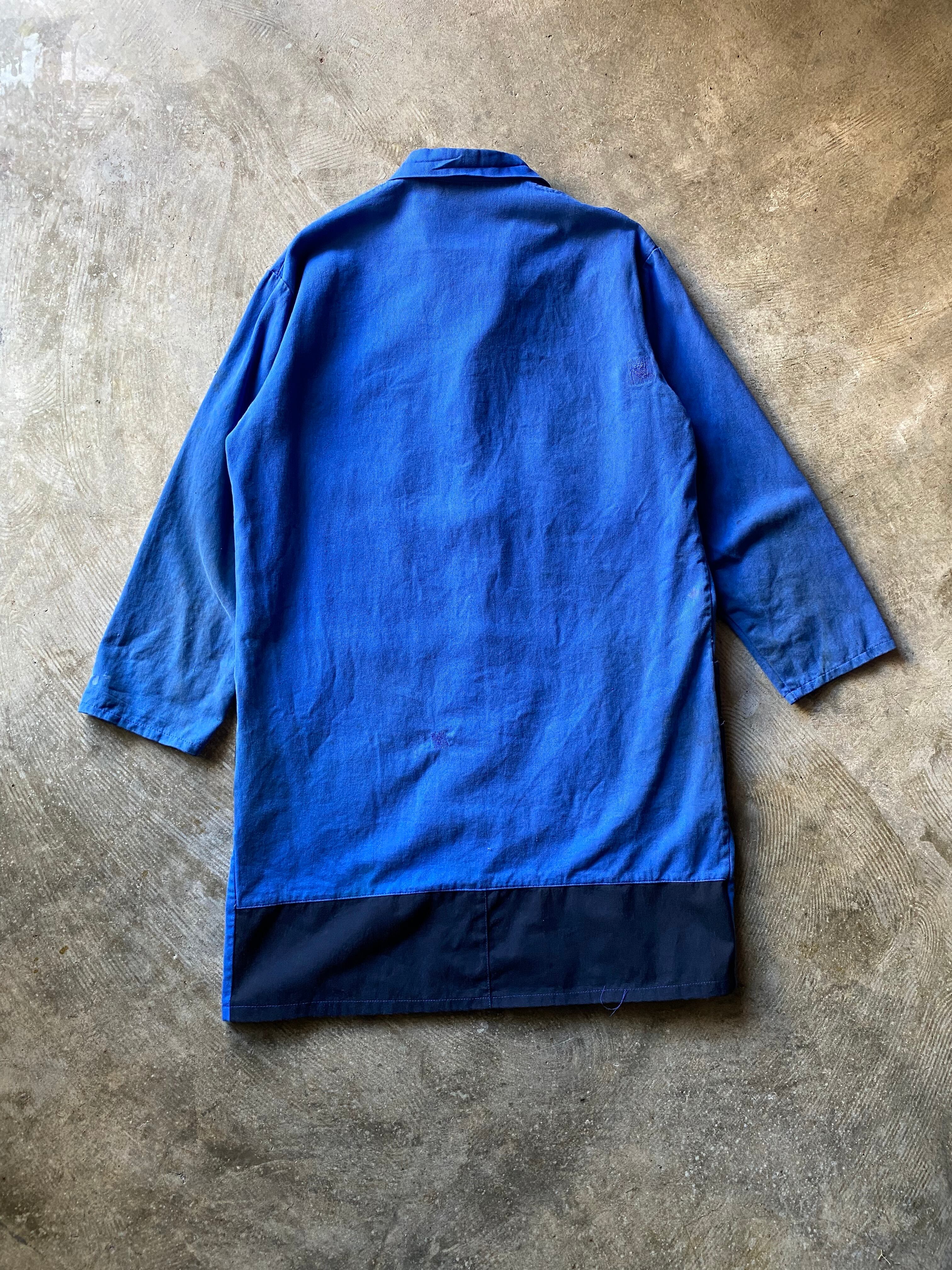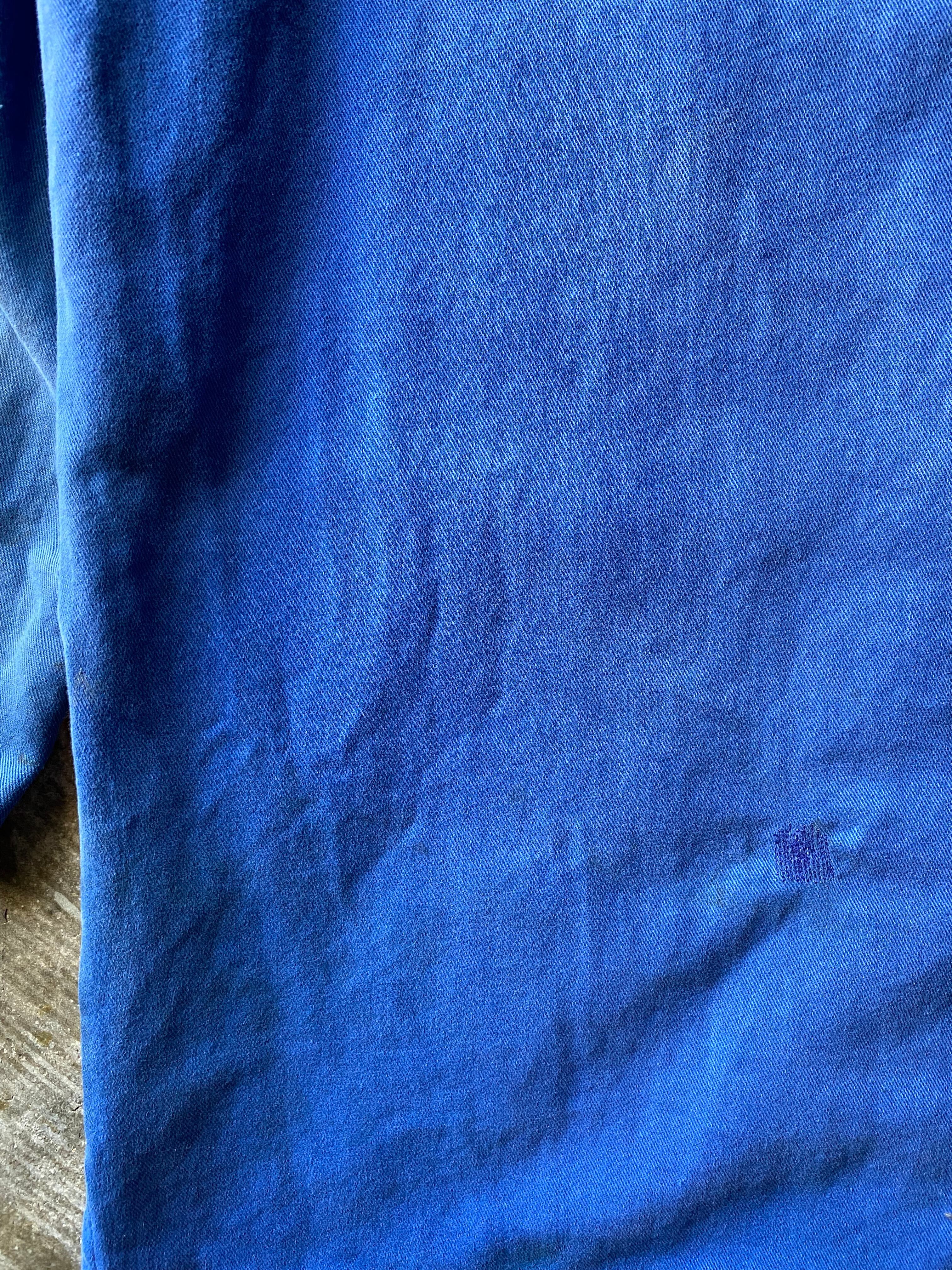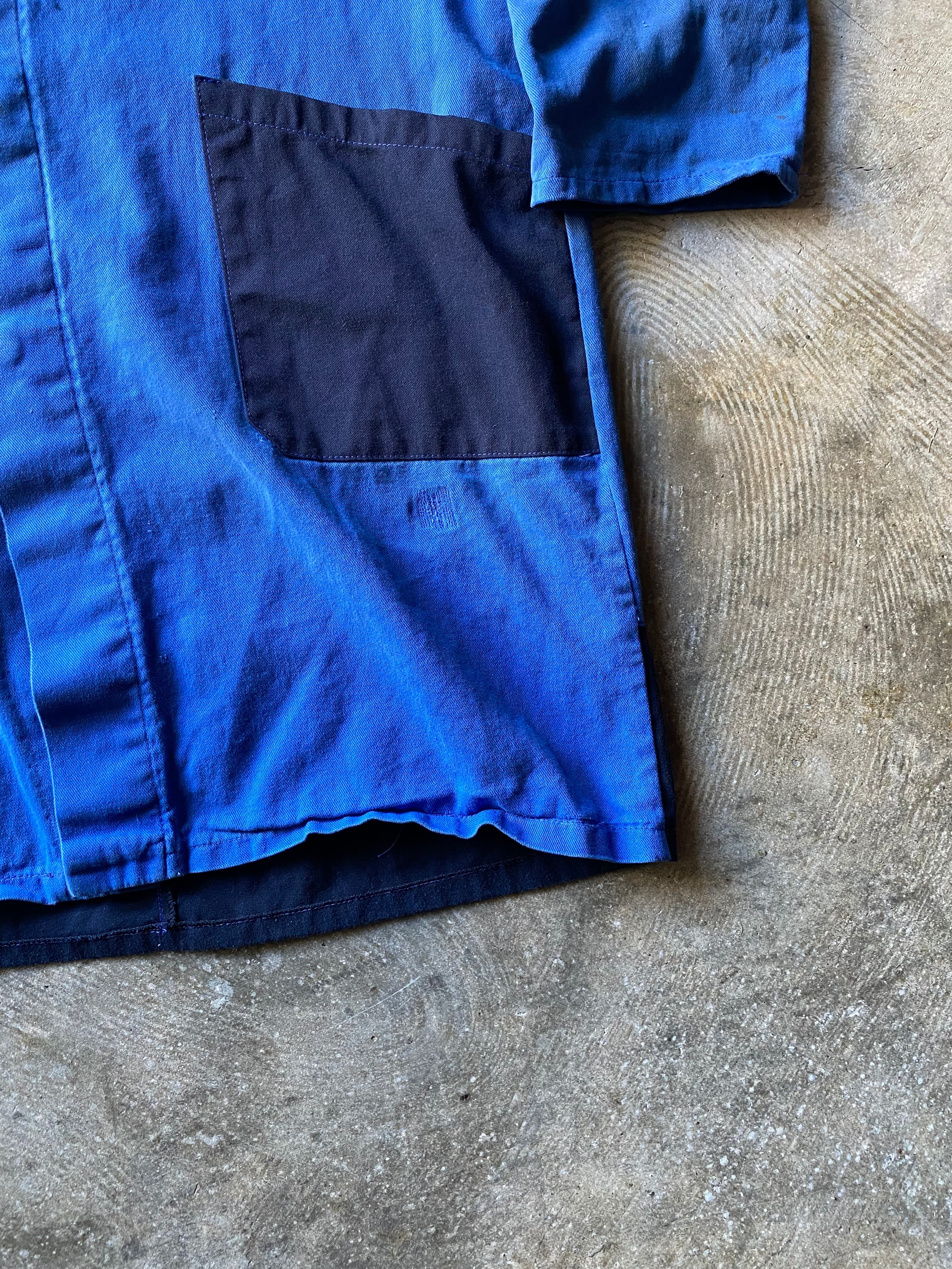 リペアの際に付け替えたと思われるポケットとテールのパッチワークがかわいいフレンチワークコート。ちょっとしたたたきリペアも味があって素敵な仕上がりです。