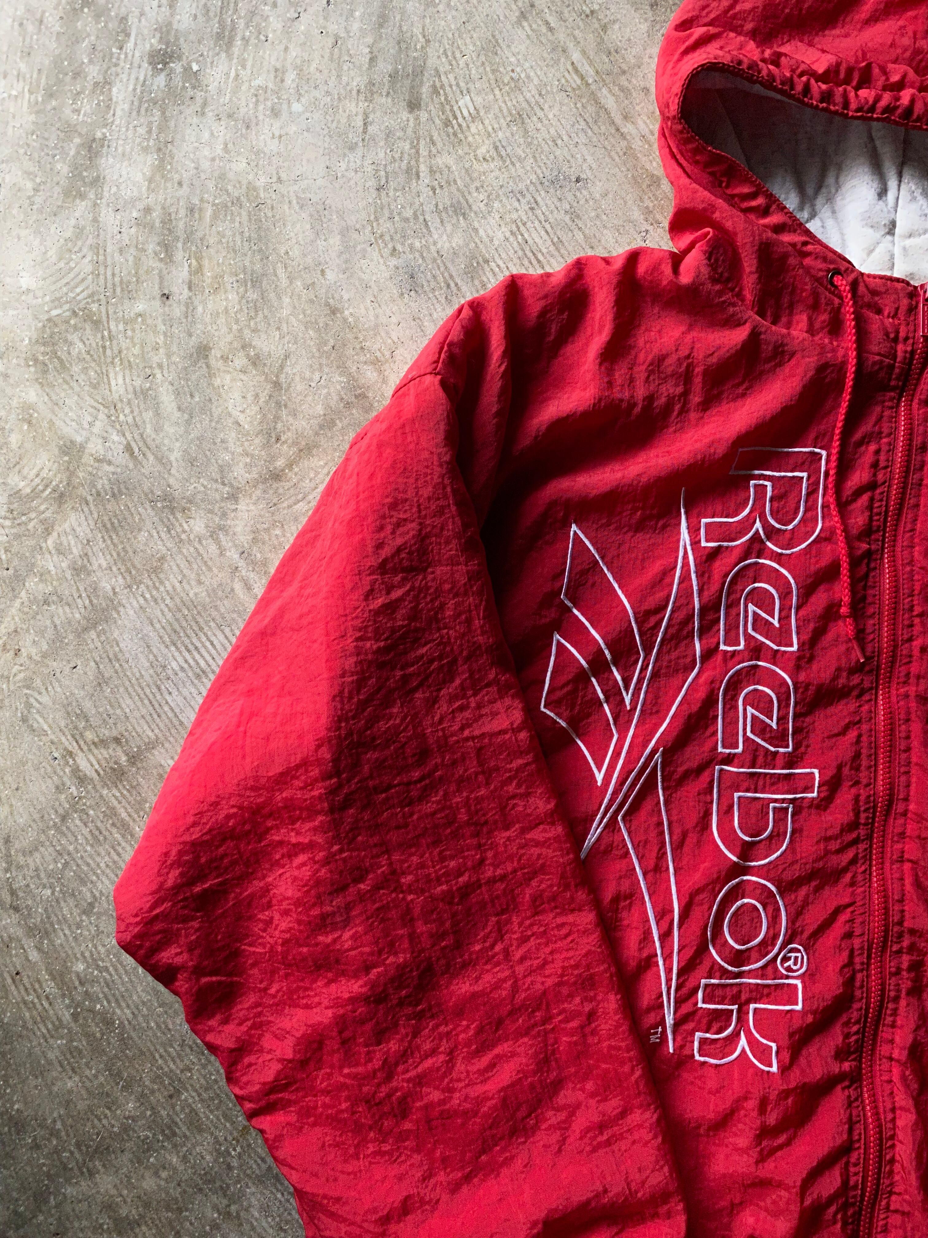 程よく中綿の入った90sリーボックの中綿ジャケット。アディダスでもナイキでも無くオールドリーボックが気分な方は是非◎