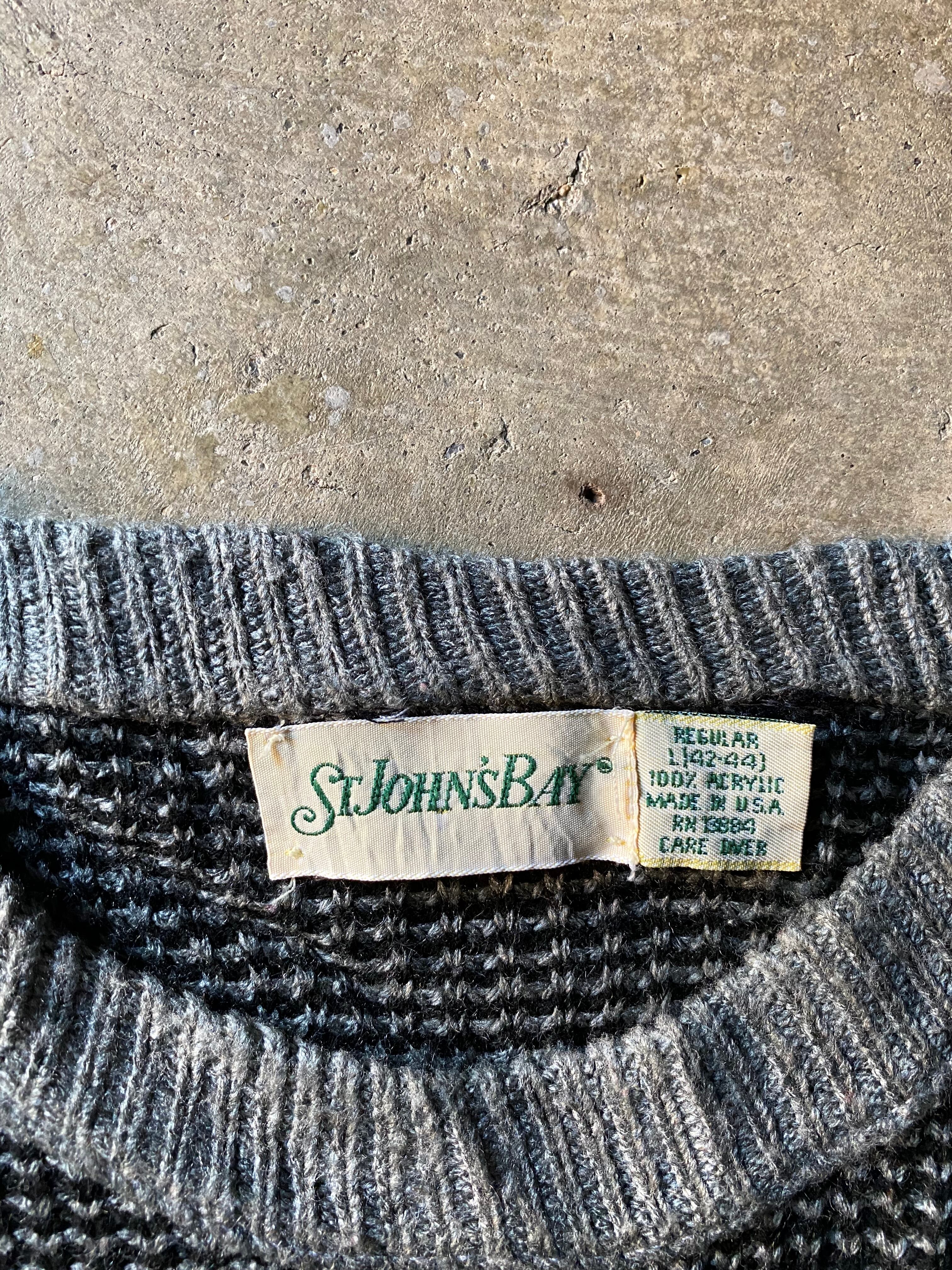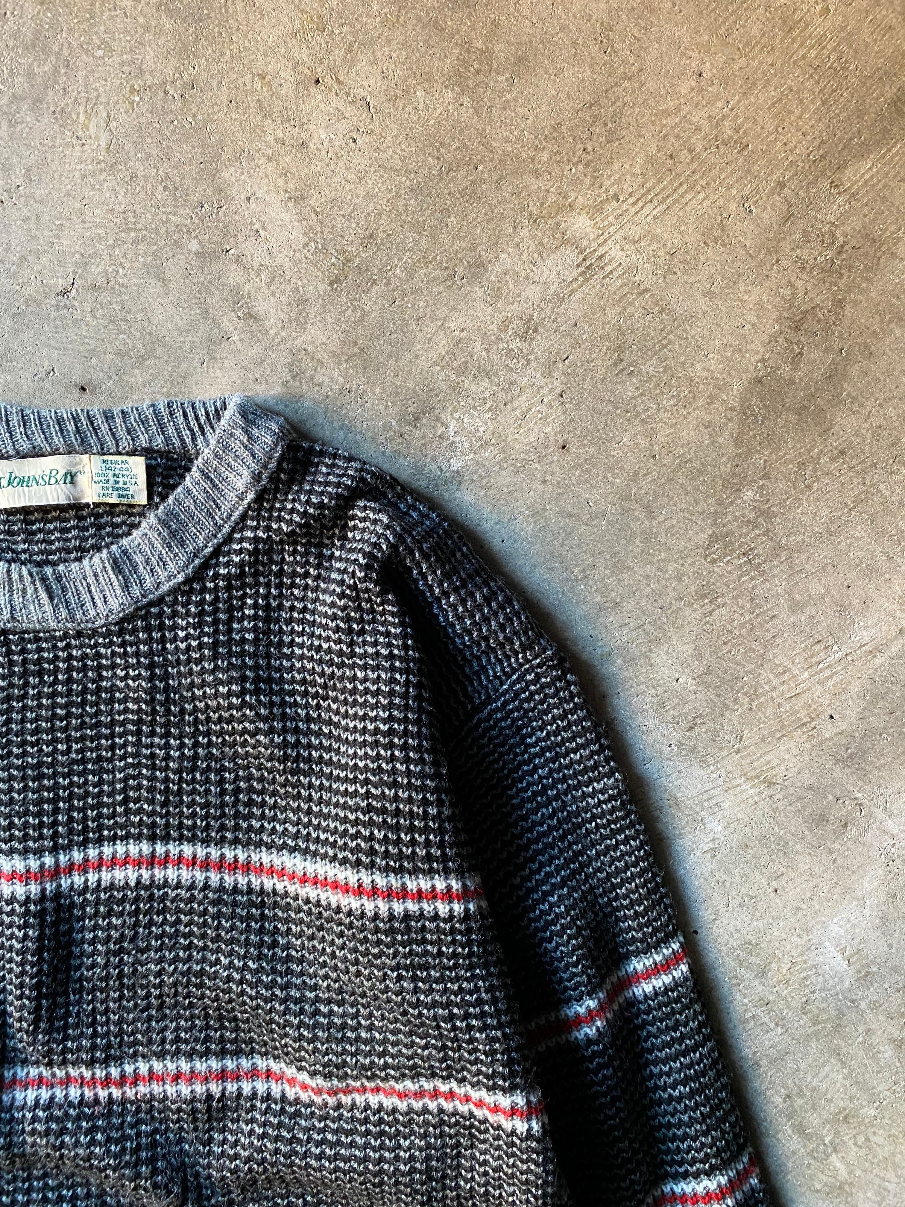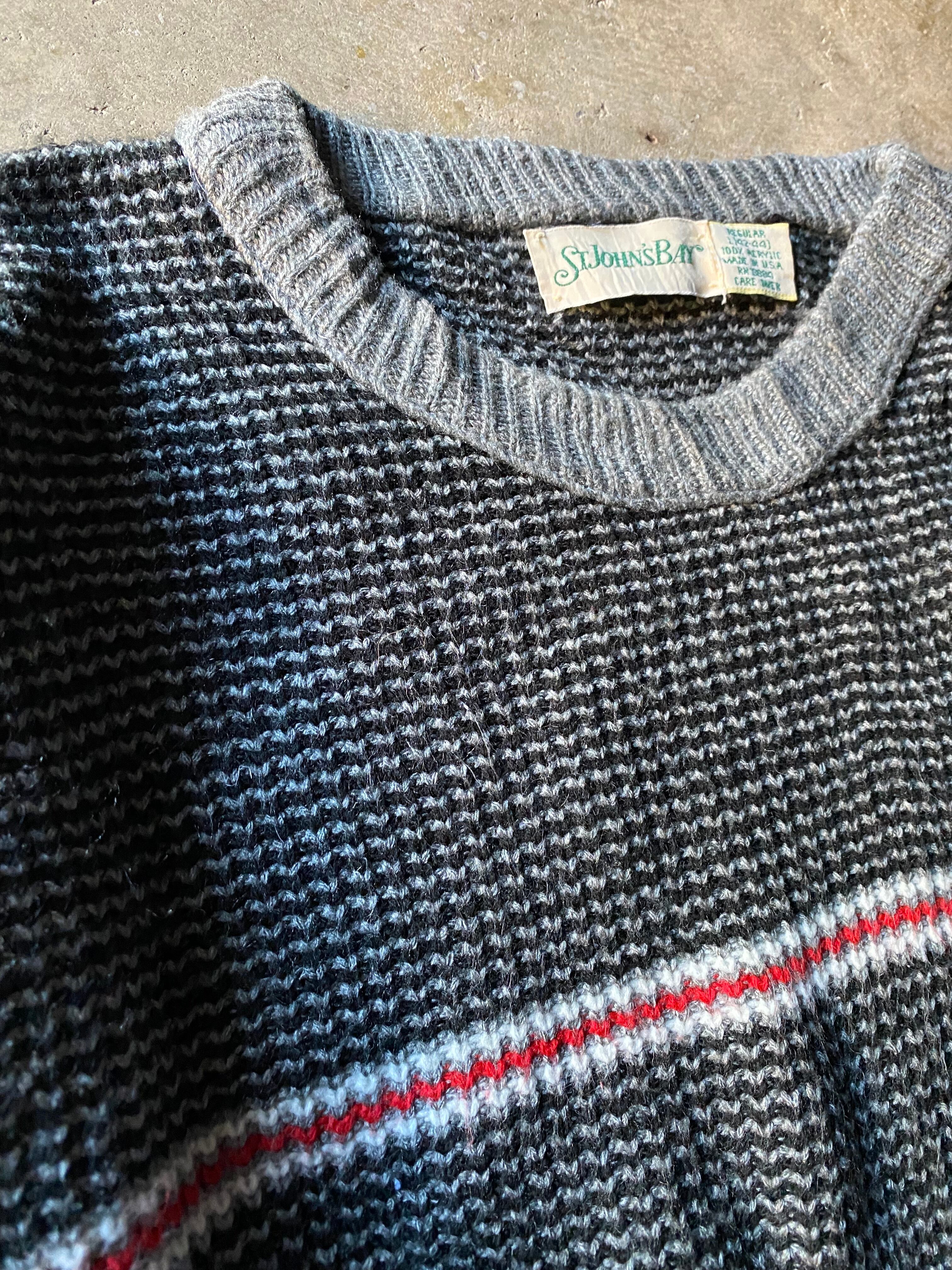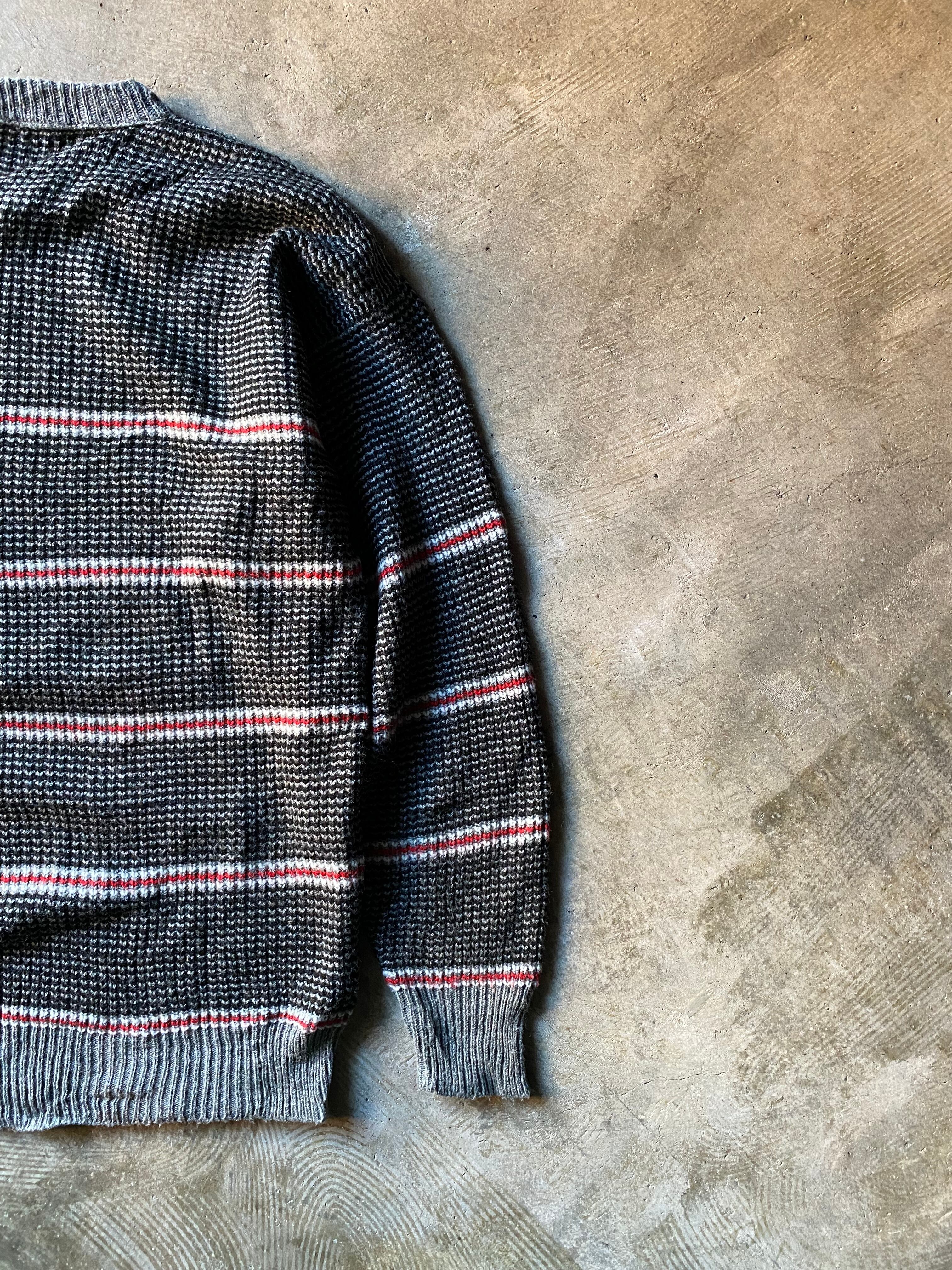 バーズアイのような柄のレトロなニット。ボーダーがいい感じのアクセントになってます。