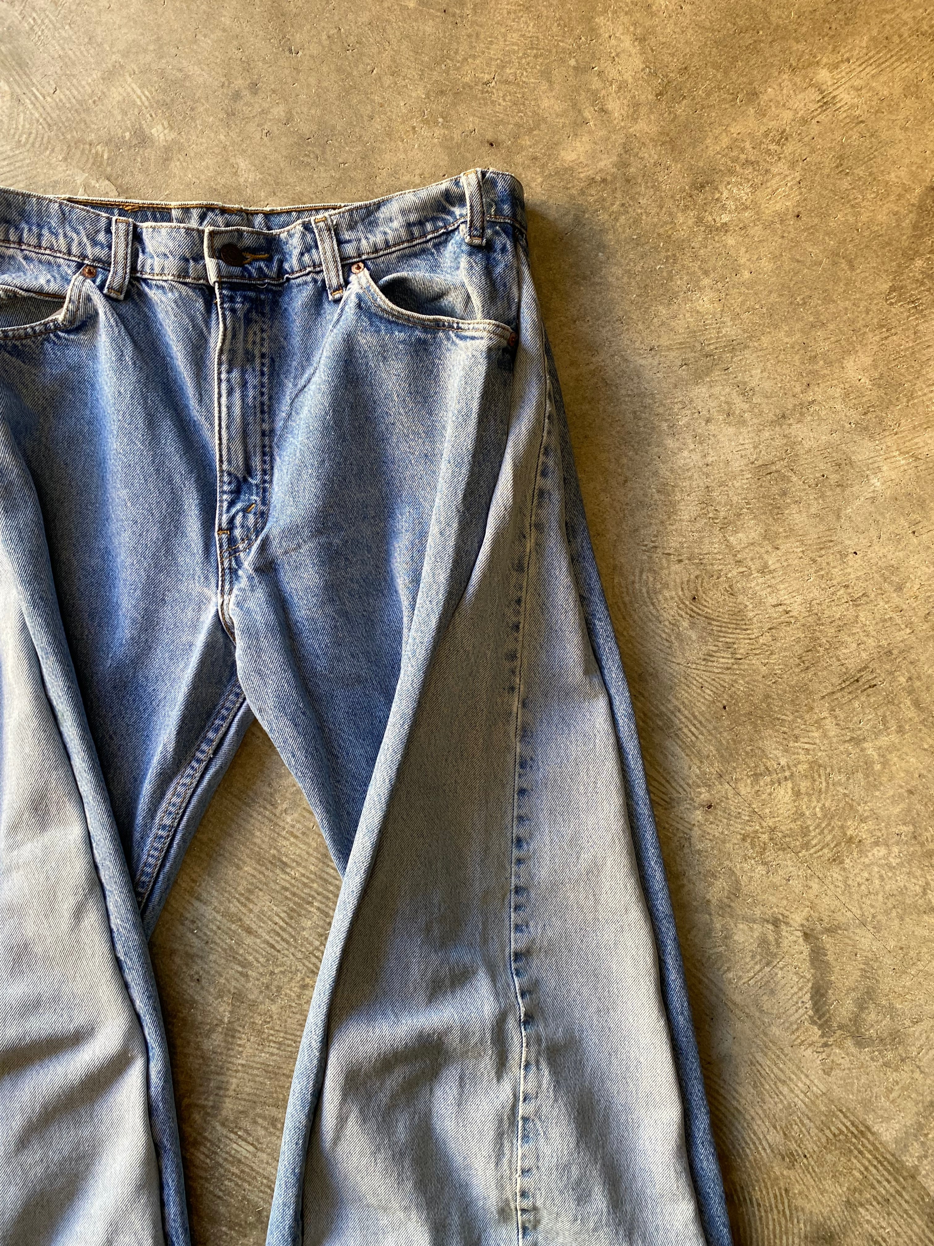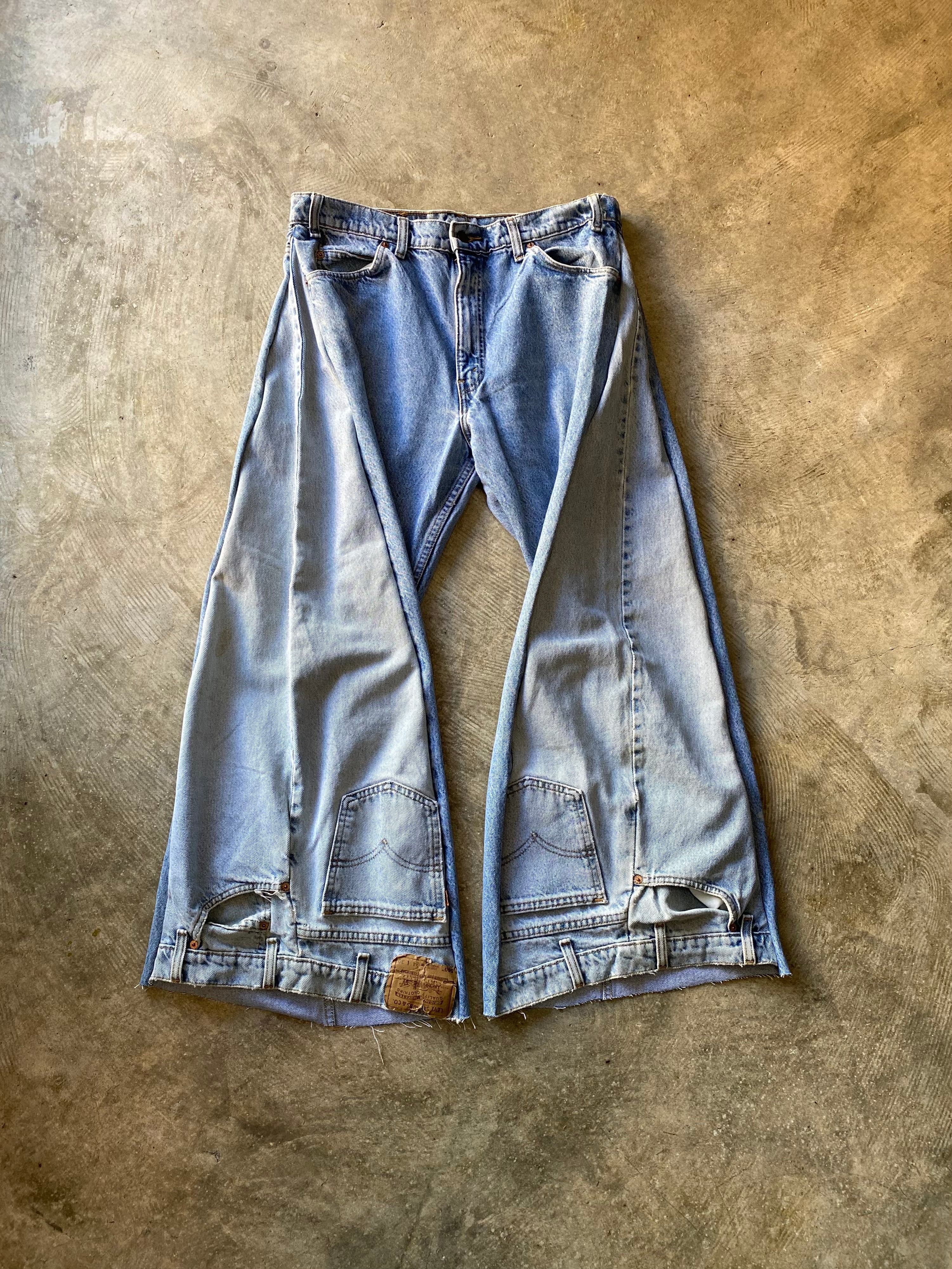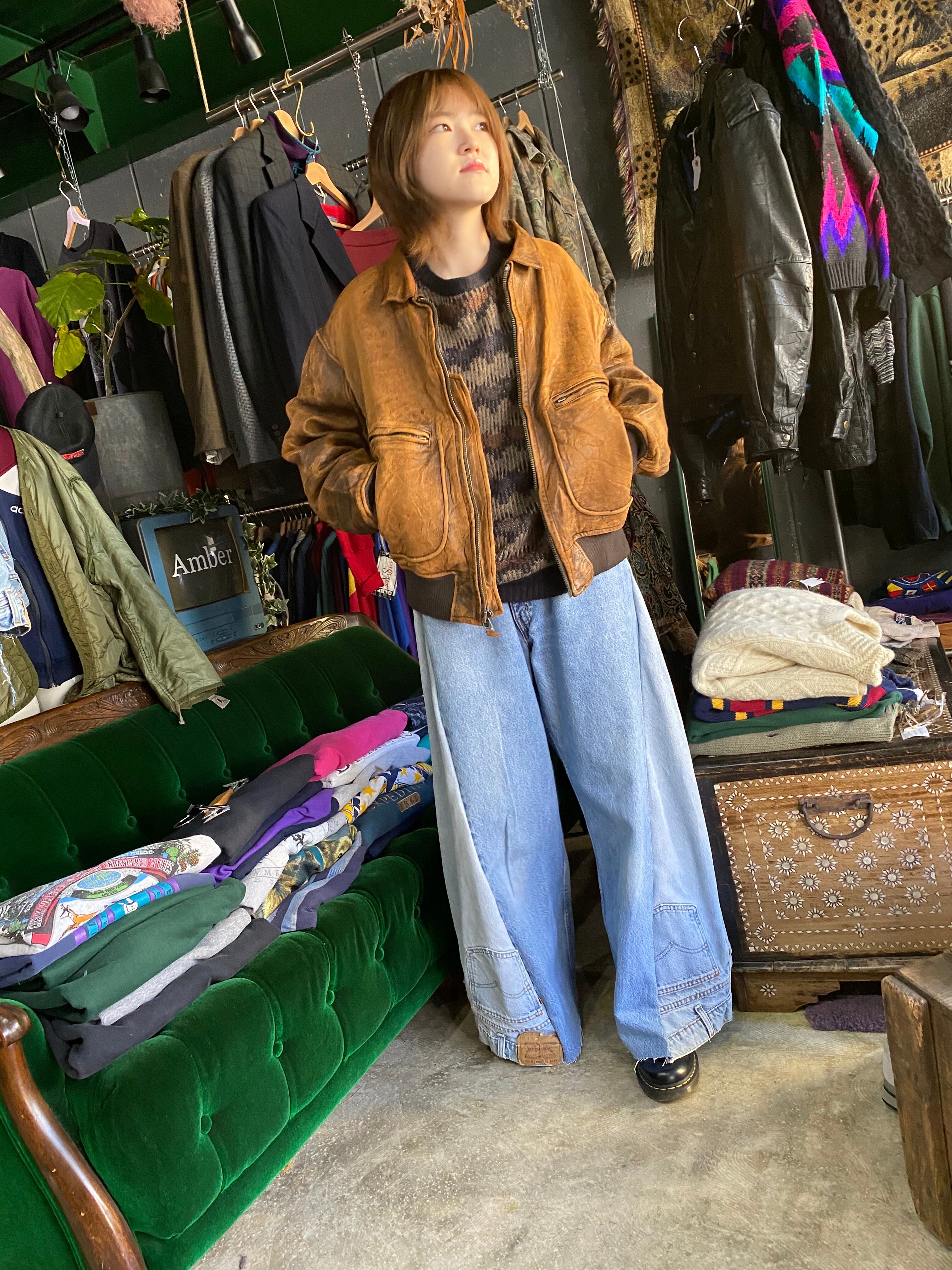 Levi's505に560をドッキングした再構築フレアデニム。レングス少し短めに設定されたこちらは小柄なメンズや女性にも◎