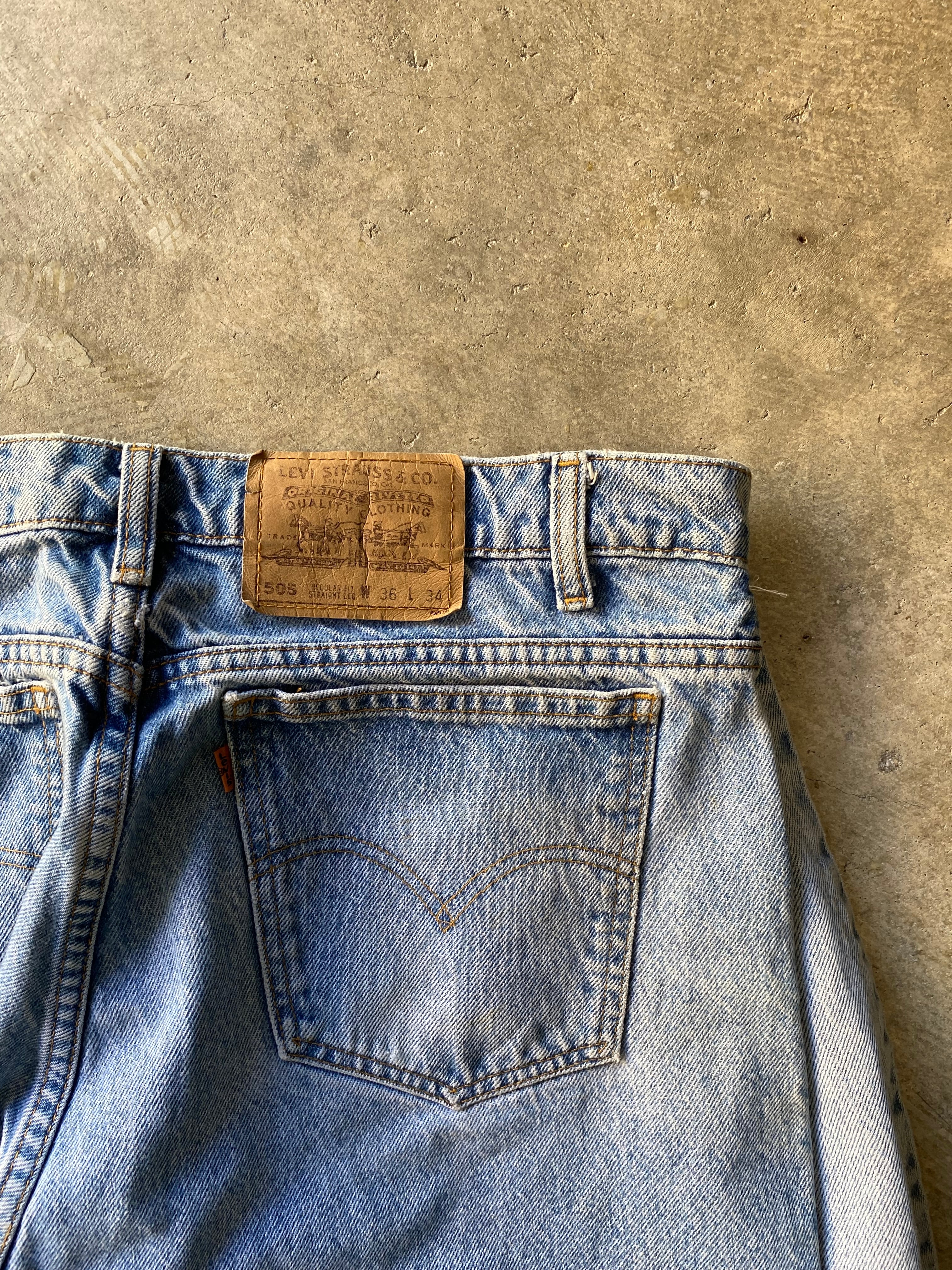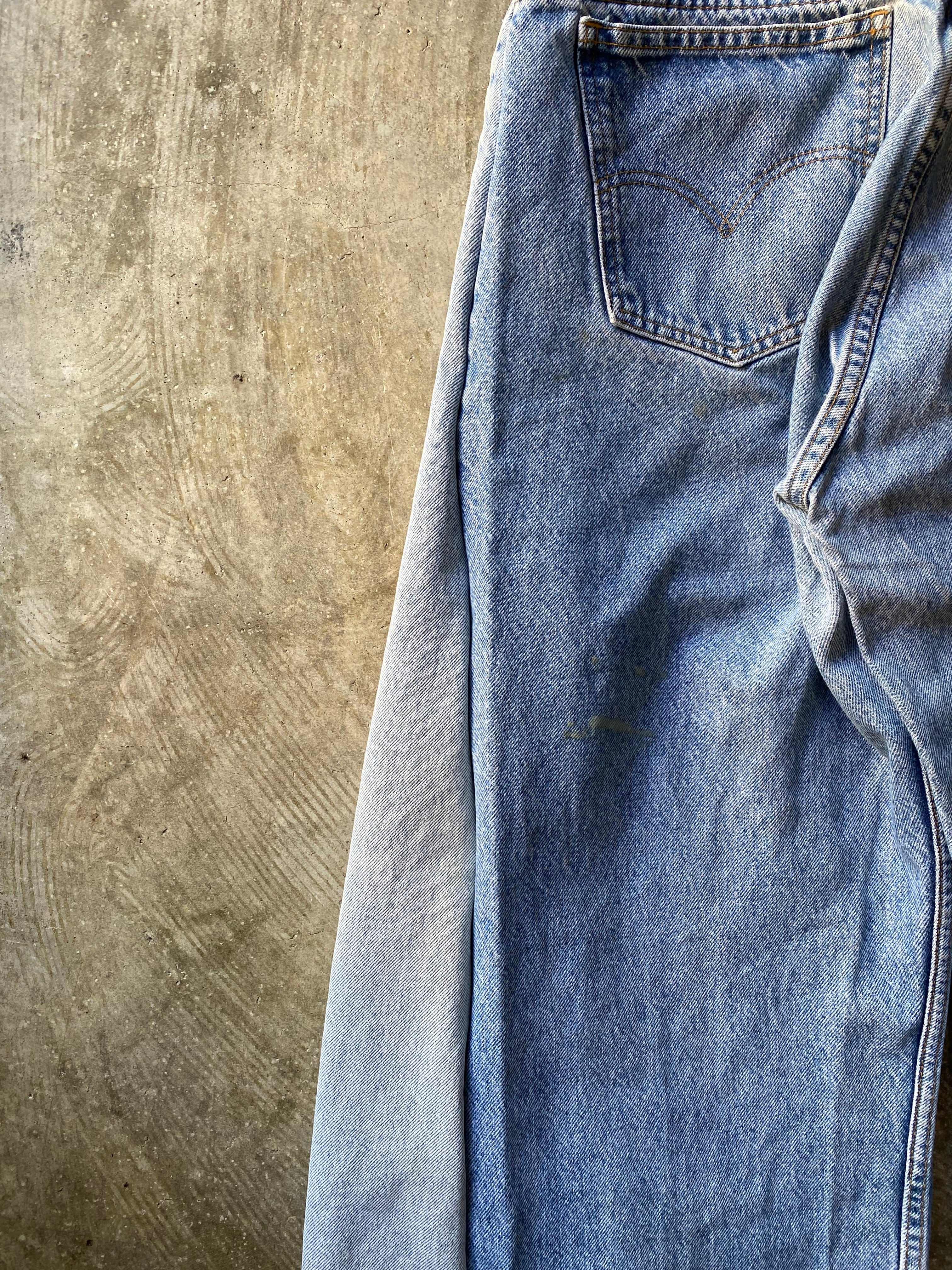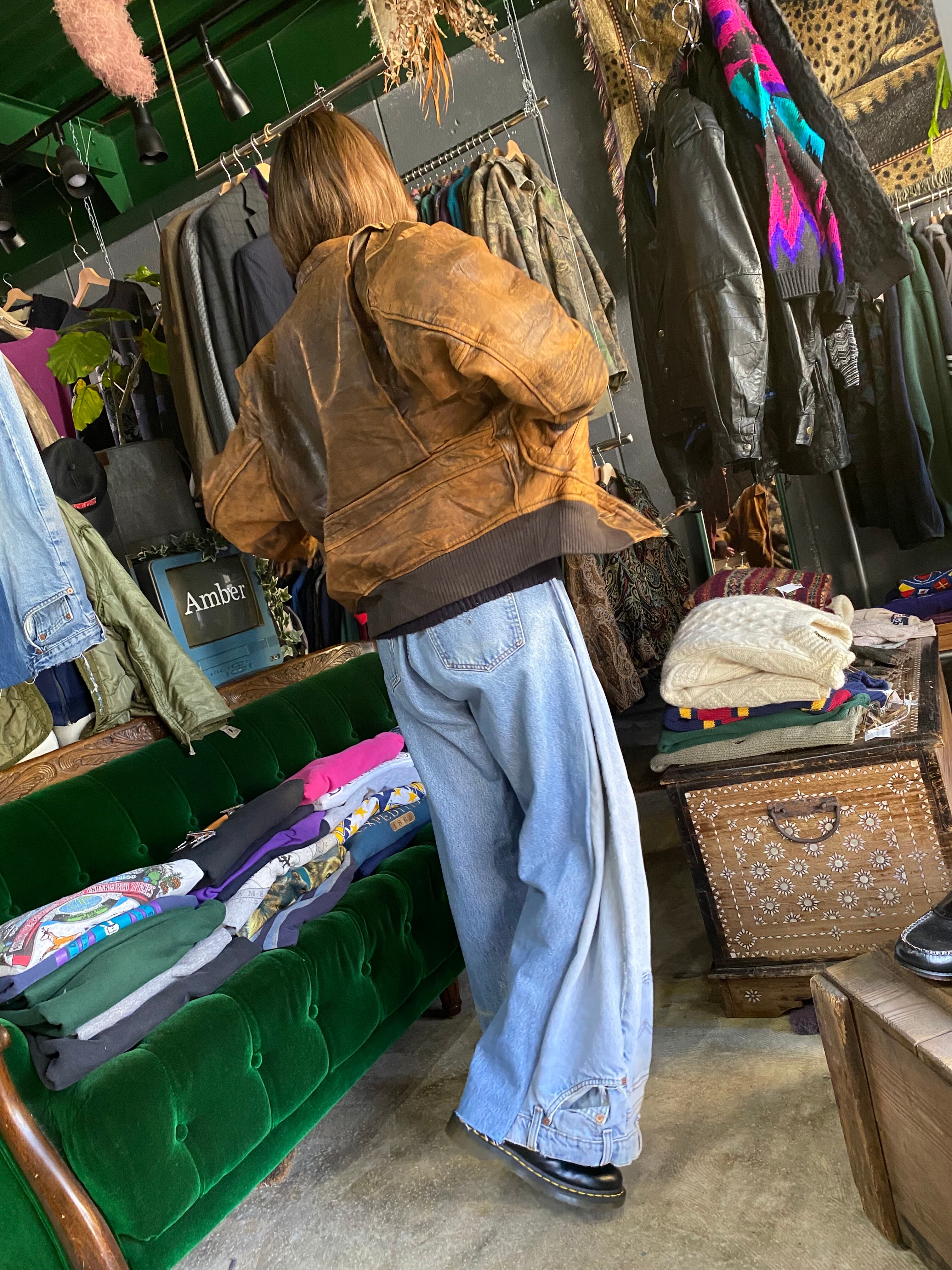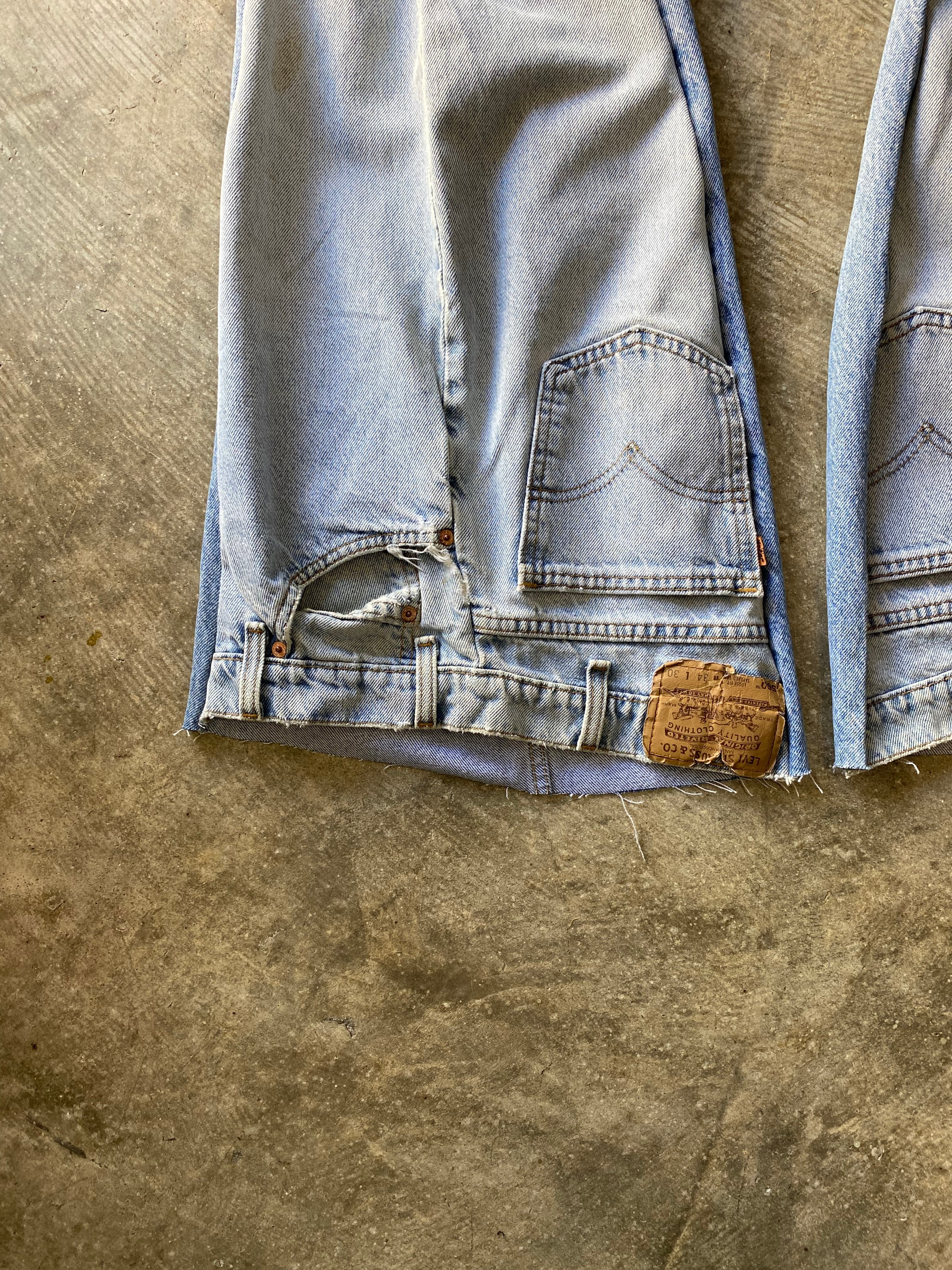 Levi's505に560をドッキングした再構築フレアデニム。レングス少し短めに設定されたこちらは小柄なメンズや女性にも◎