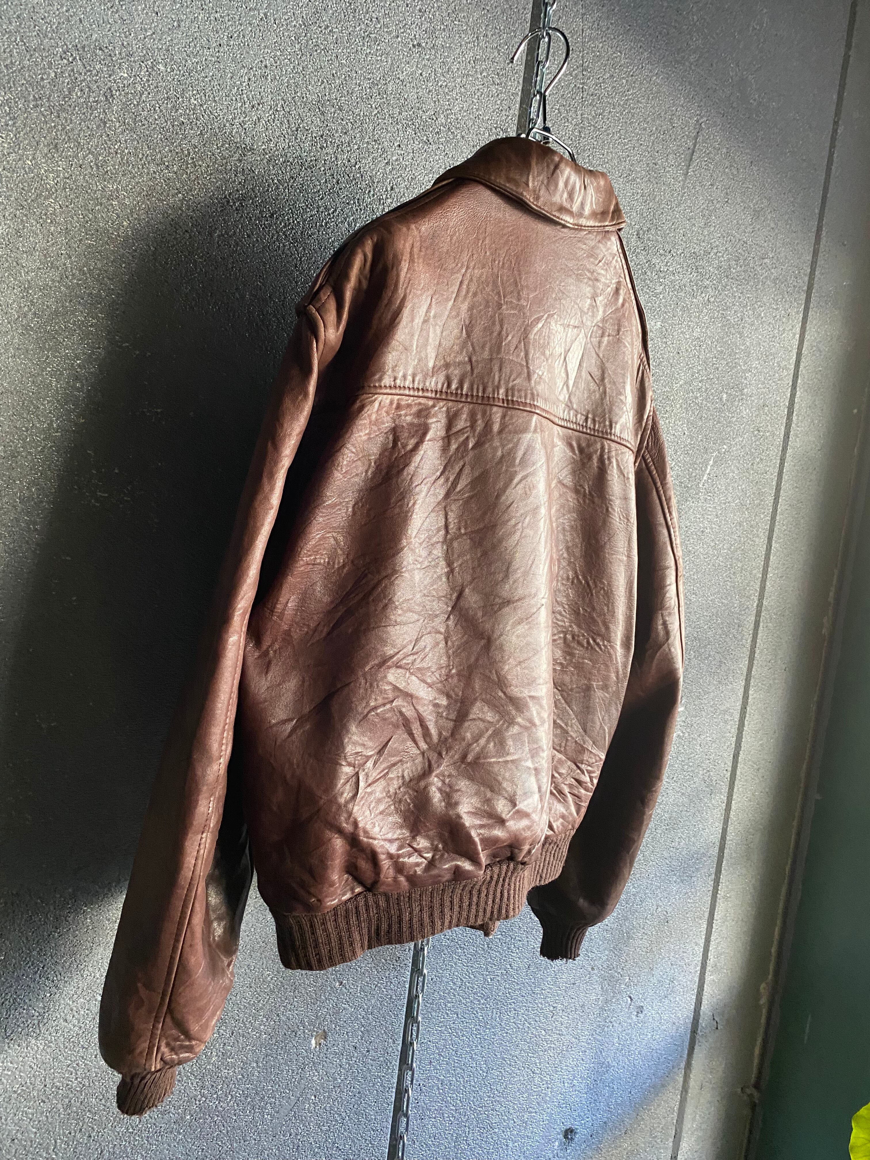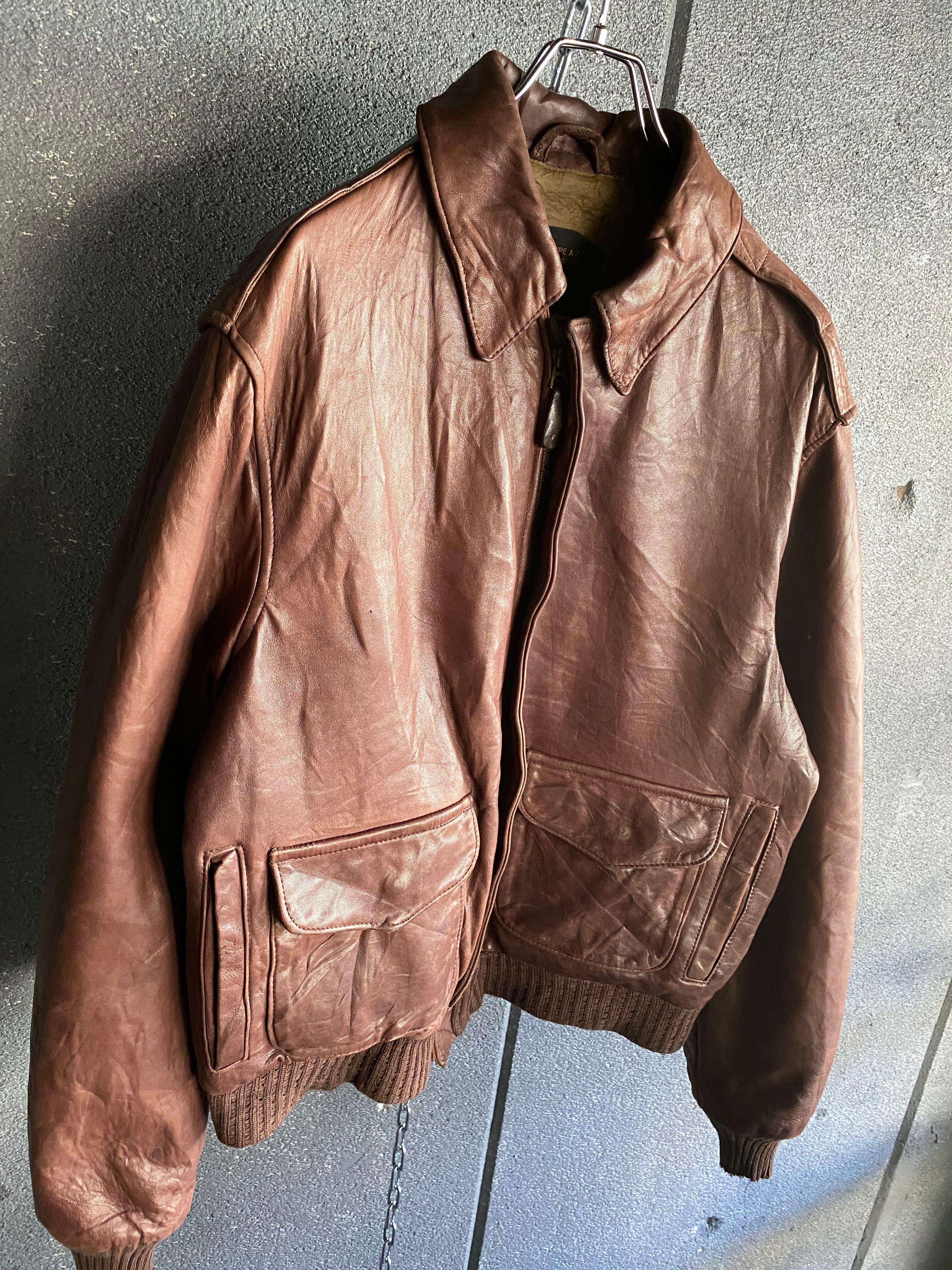 年代なりの使用感、レザー特有の経年による変化があります。リブ部分のダメージ、ジップ、ボタンに少し錆あり。着用は全て問題なく年代のわりには良い状態です。