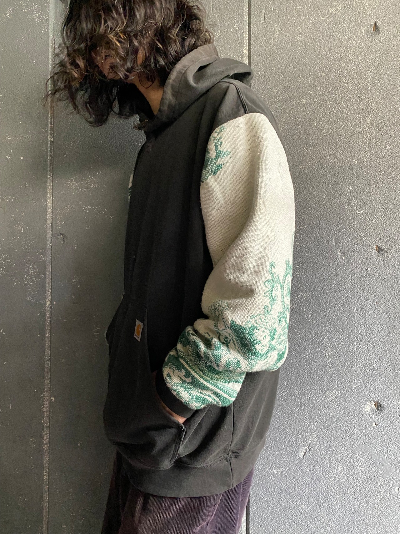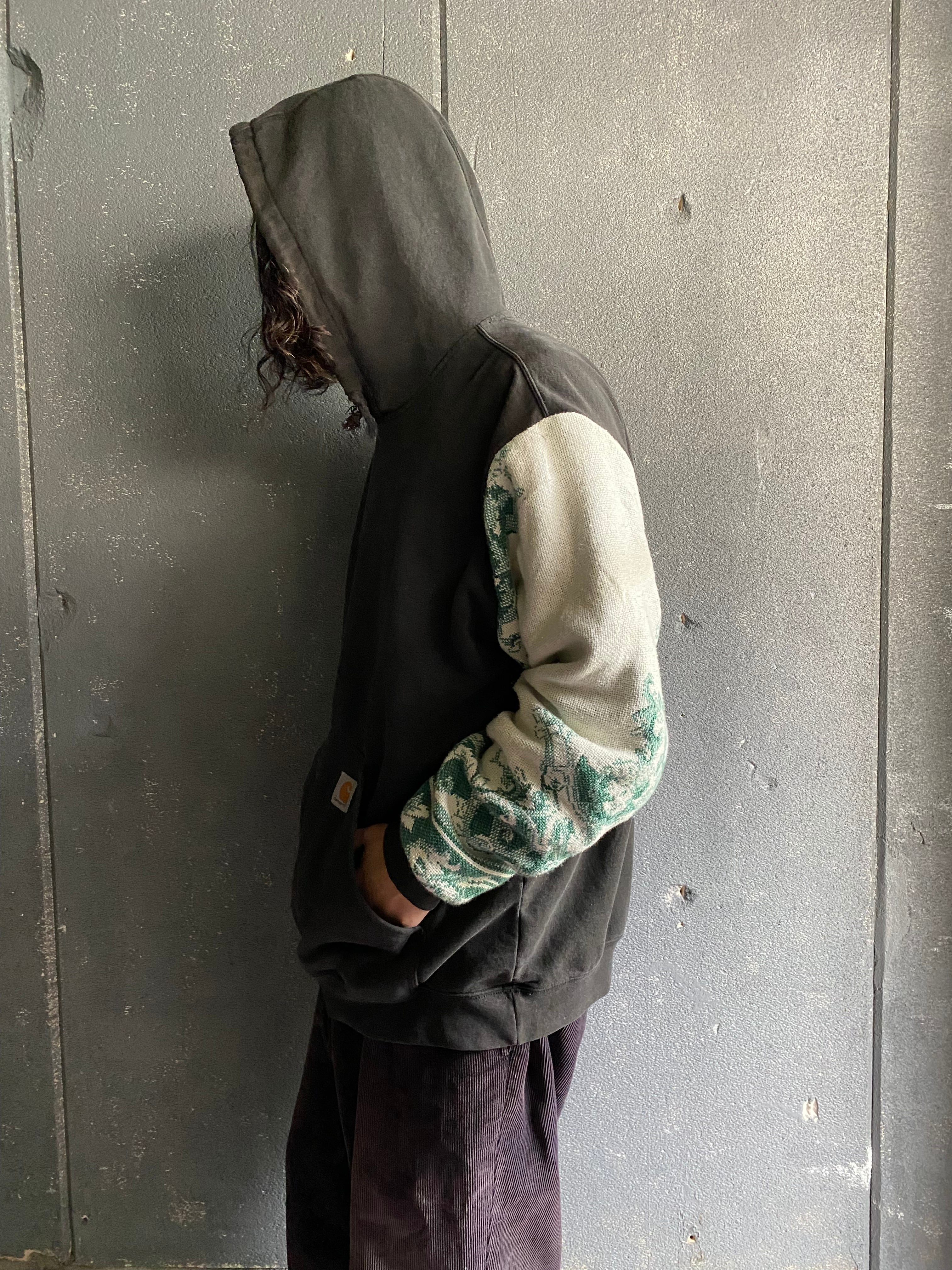 カーハートのフーディをベースに、袖をラグで再現して差し替えた一着